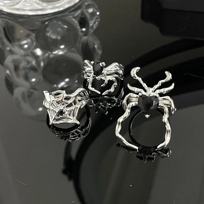 3 anéis estilos galvanoplastia preto coração aranha abertura teia anéis de dedo irregular halloween punk gótico unissex festa jóias presentes
