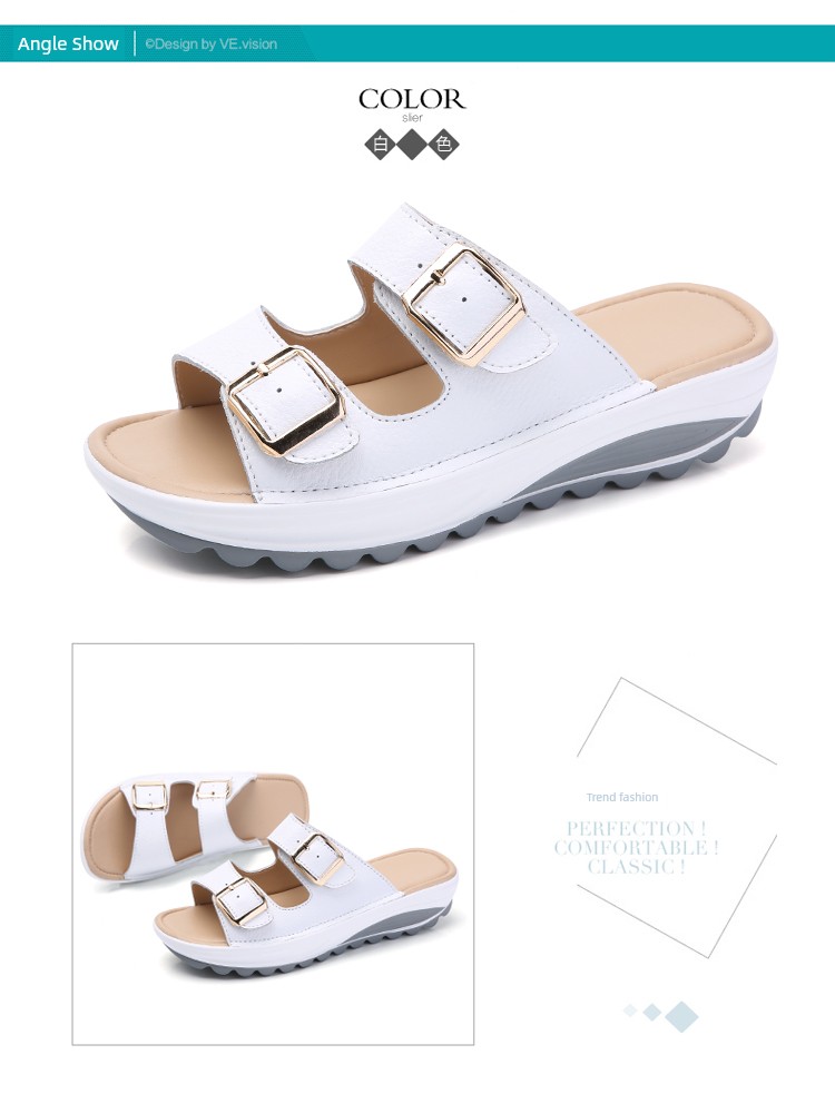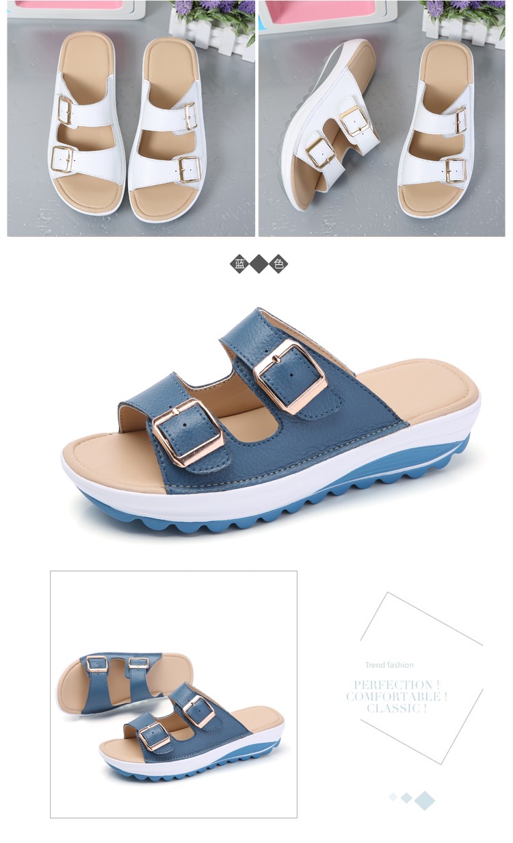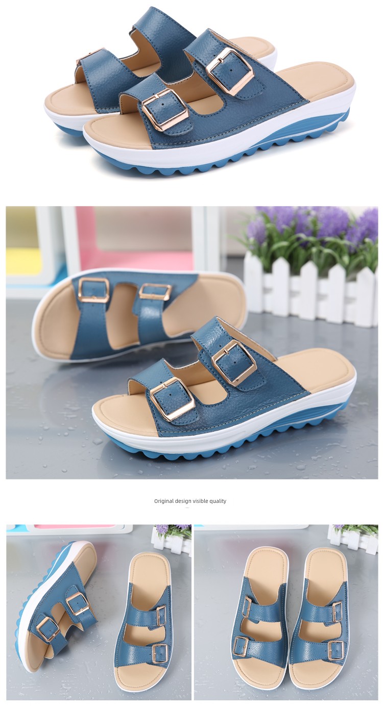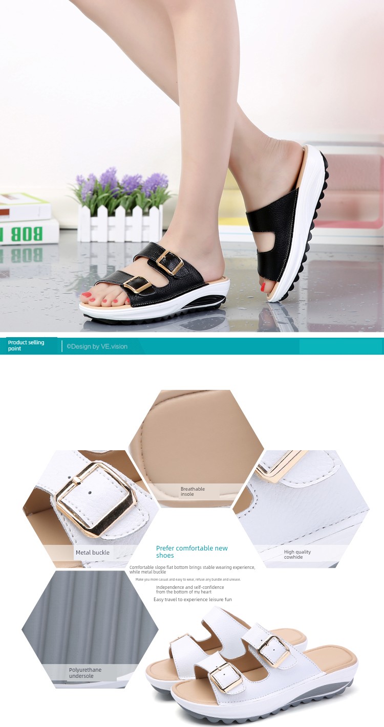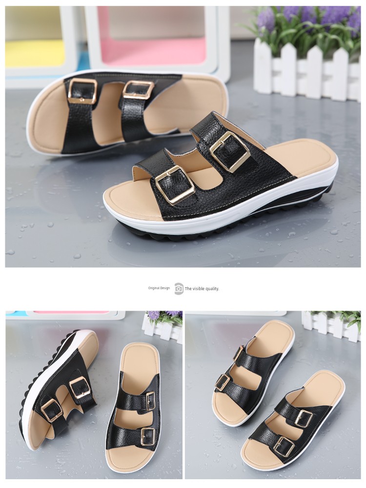 Moda verão chinelos de couro com sola grossa praia antiderrapante